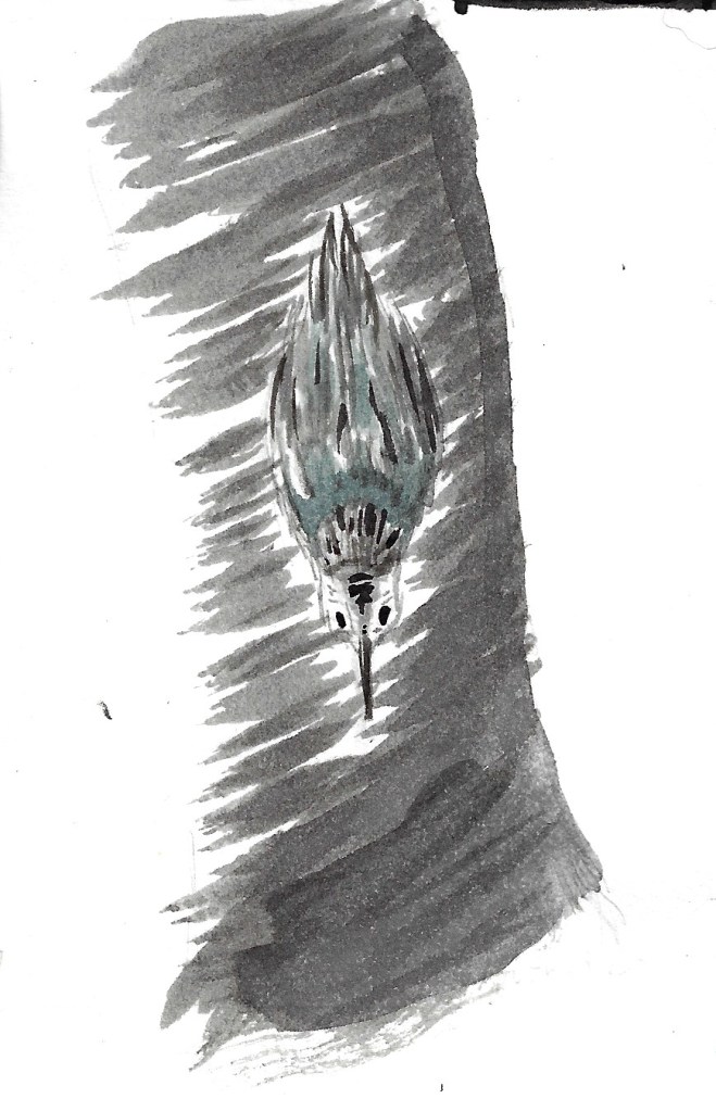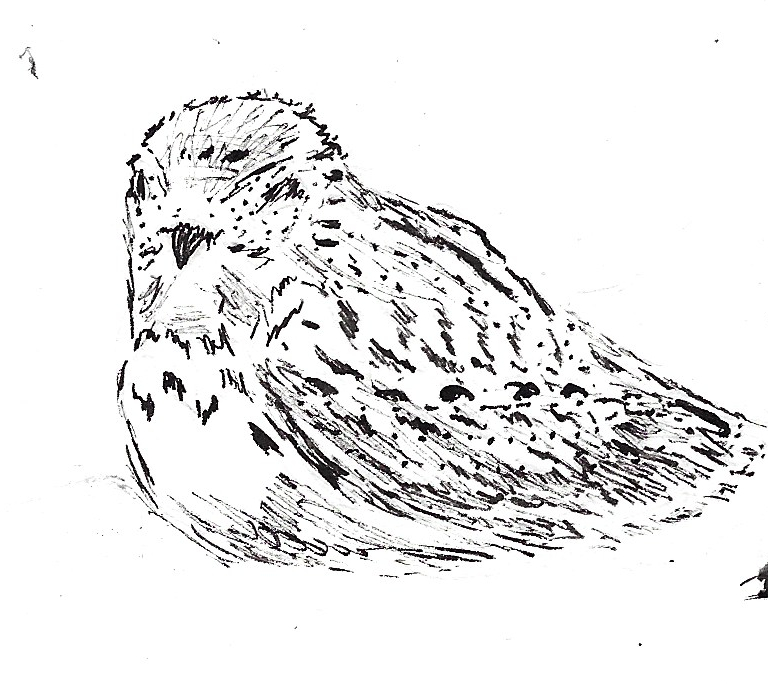 More October art. I do like the notion of just doing a bunch of little pieces because it’s [a month], and I sure as shootin’ don’t like to stick to prompts. So here’s Spider-Woman (working on hair textures), a nut hatch (mixing blue and black inks), penguin (different pen, minimalism) and a nighthawk (loose lines).