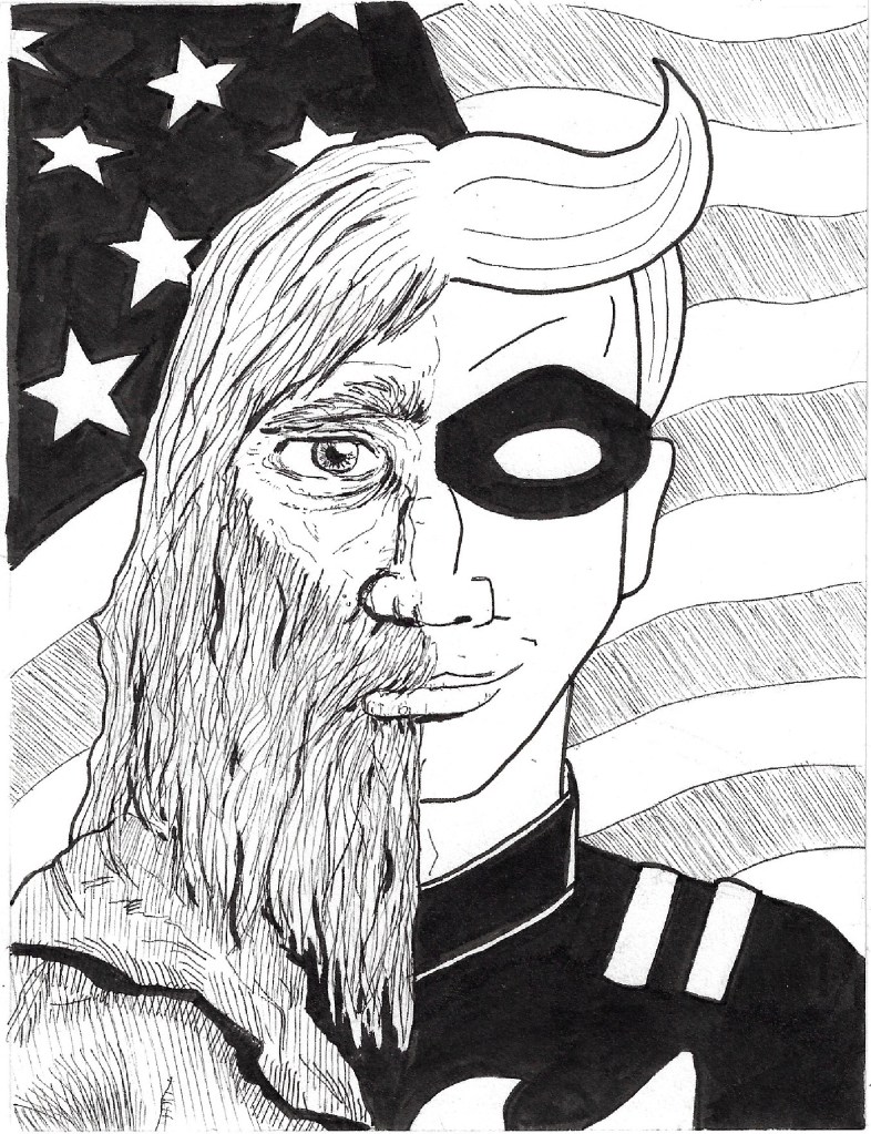 One day I’m going to write more Punchin’ Bag, do a Kickstarter about it, and offer trading cards as a freebie. That’s at least one other graphic novel away, so in the meantime here are some images. This one’s Tex Arkana, my less punny take on Americana heroes. Check back next week for a colored version (ish).